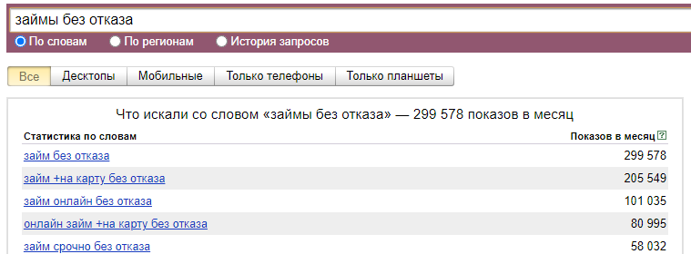 Была собрана небольшая семантика (ключевики) из wordstat.yandex.ru вручную.