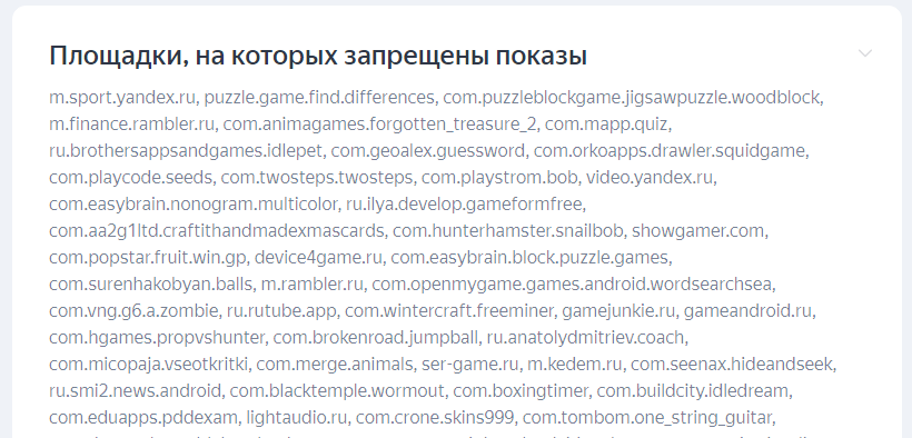 площадок, объединены в один общий список и добавлены к кампаниям.